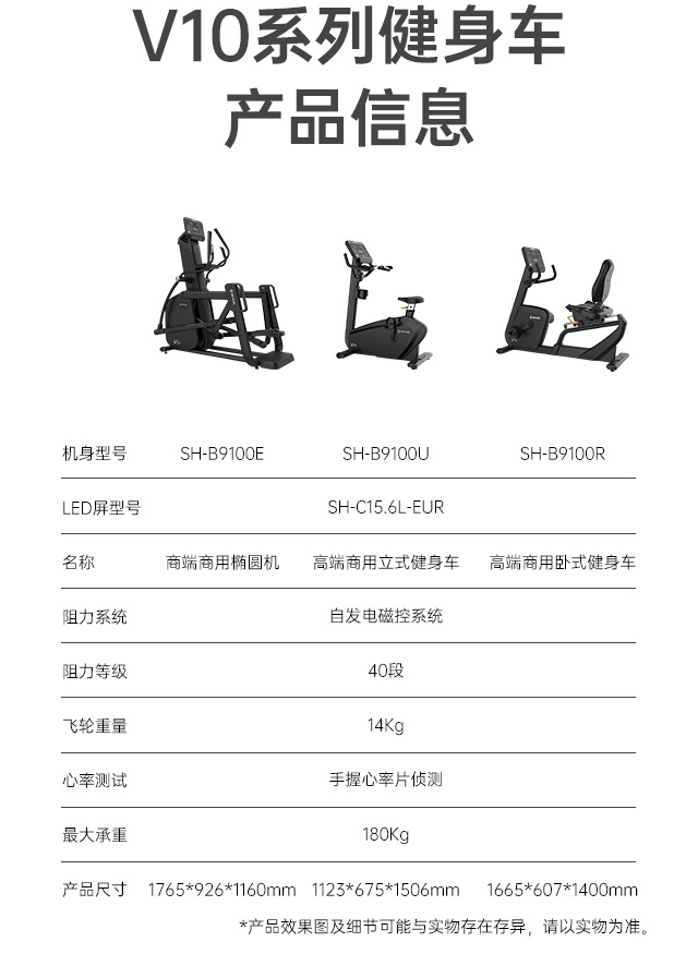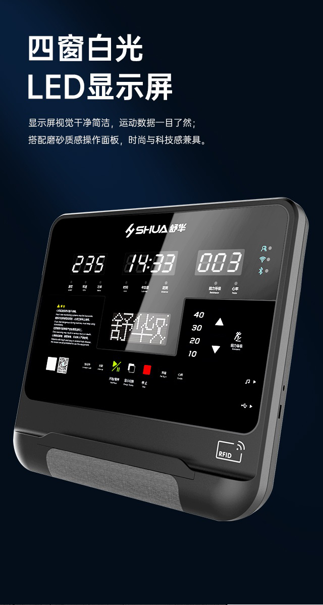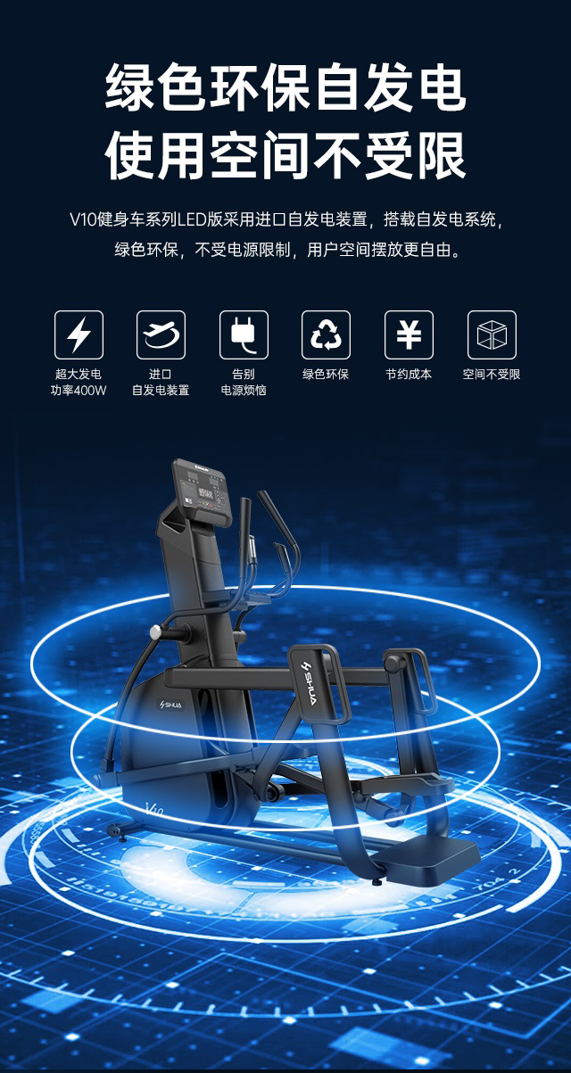 商用椭圆机SH-B9100E(LED版)采用自发电方式,磁控阻力系统的阻力系统,可以设定40段阻力段,最大使用者体重为180kg,踏步跨距可达508mm,适用于大多数人,现在锐强体育旗舰店都有这一款椭圆机,欢迎前来体验试机。