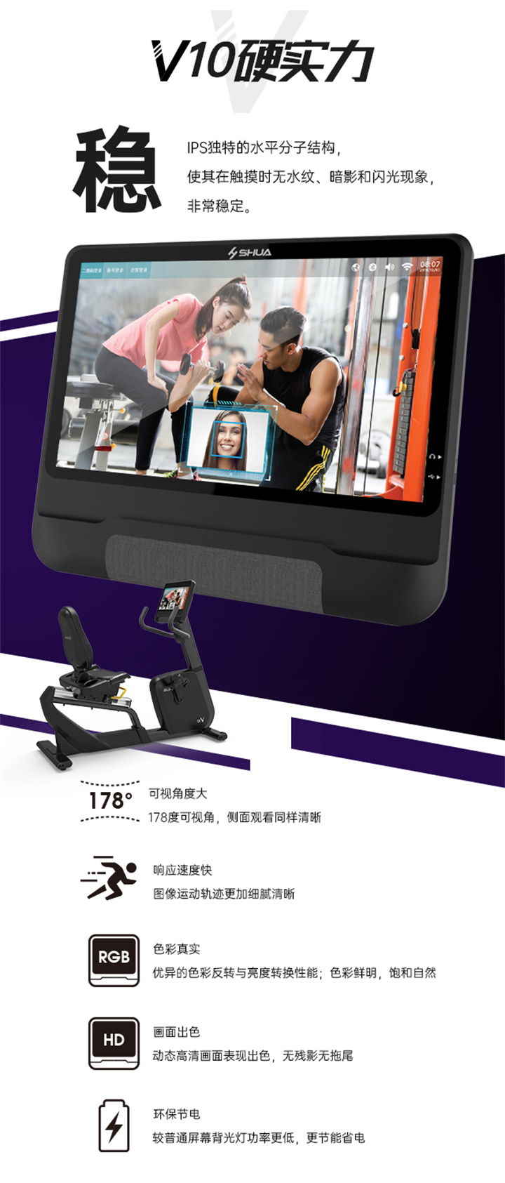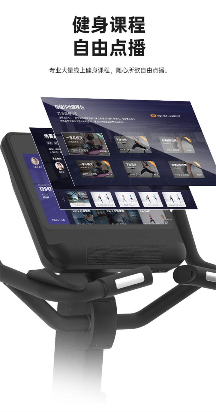 舒华立式商用爱游戏体育-爱游戏| 爱游戏官方网站 SH-B9100U(V10)触屏版拥有超大显示和操作屏幕, 可以任意设置阻力、时间和距离等参数,还可以即时显示心跳和转速等数据,同时,SH-B9100U提供多项科学运动处方,更轻松掌握运动节奏。